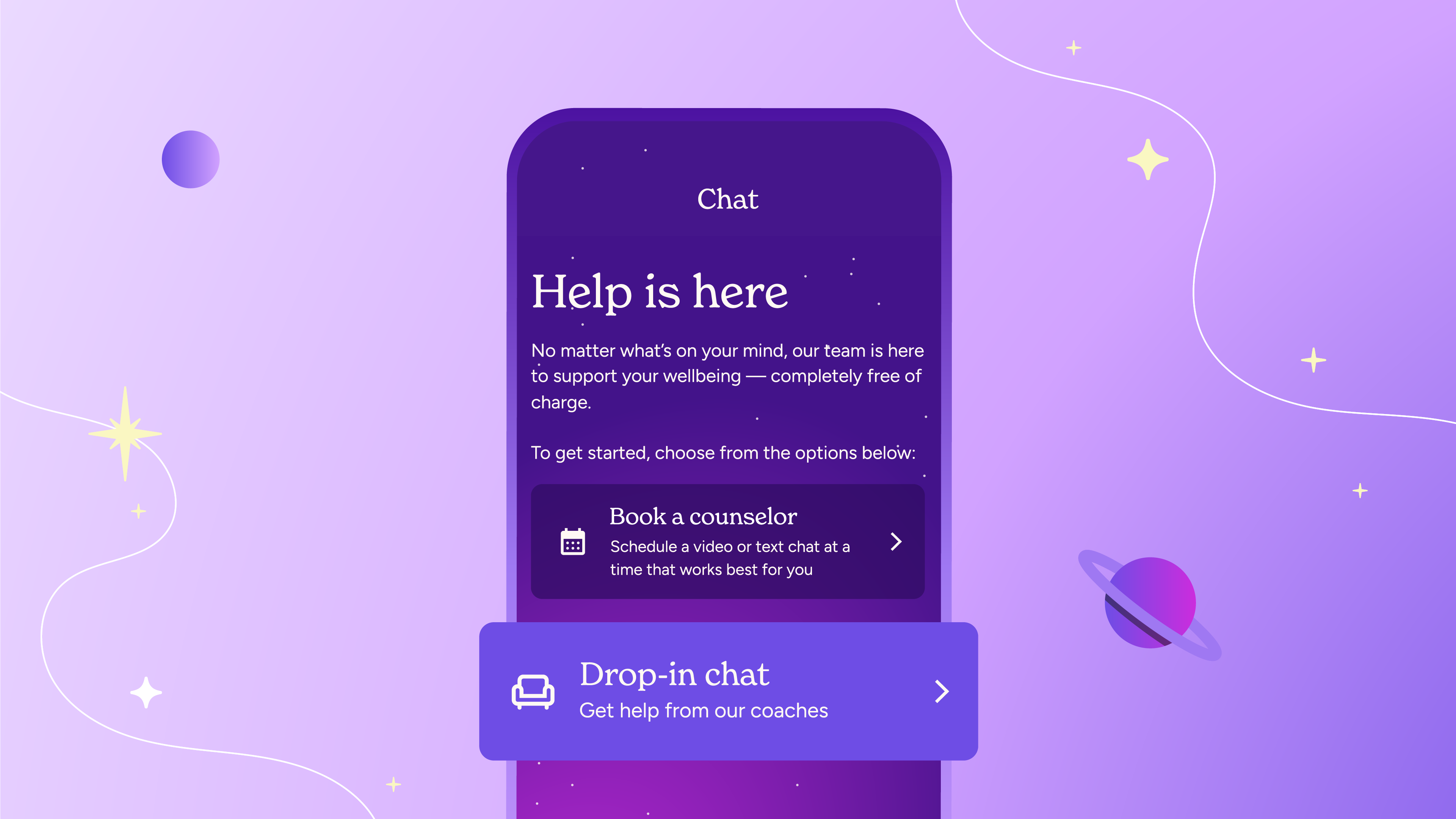 - Confidential conversations focused on everyday stressors like stress, school, and relationships